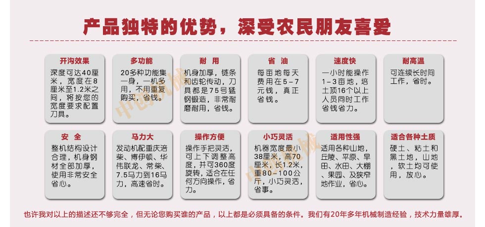 大蔥收獲機公司先后獲全國鄉(xiāng)鎮(zhèn)企業(yè)創(chuàng)名牌重點企業(yè)、全國誠信守法鄉(xiāng)鎮(zhèn)企業(yè)。